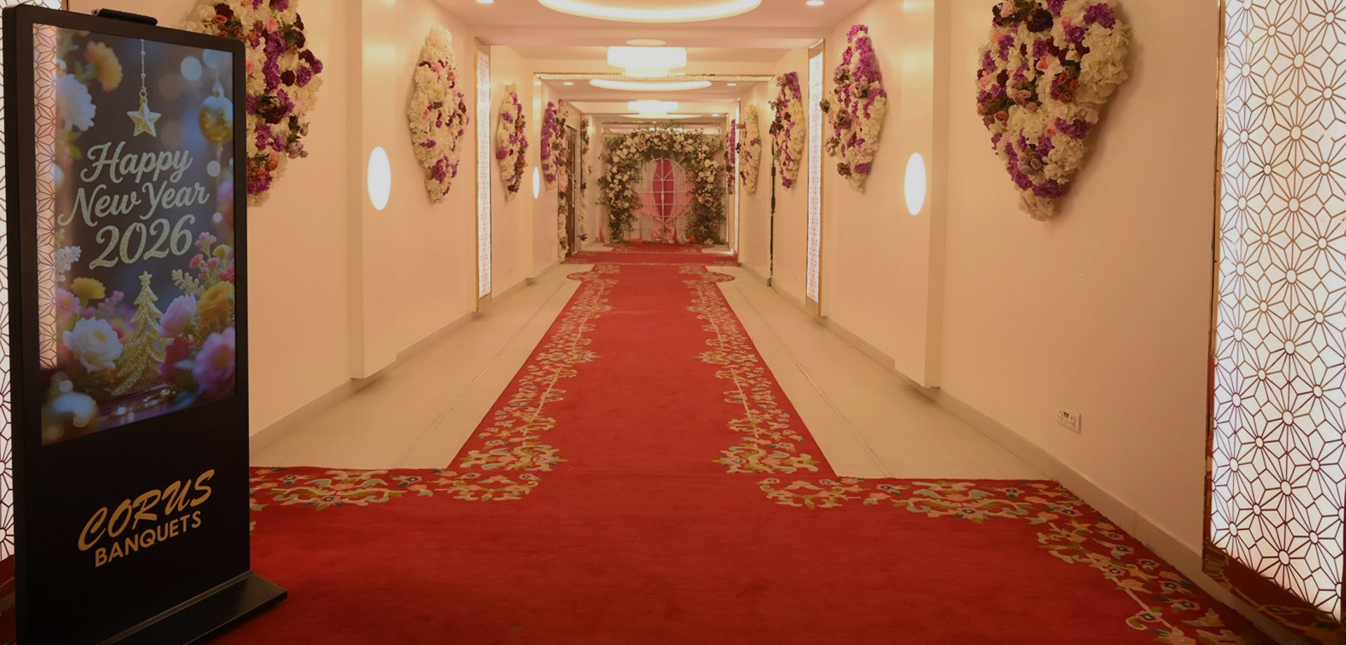 green surroundings. Elevate your events with Corus's banquet hall, ideal for weddings and